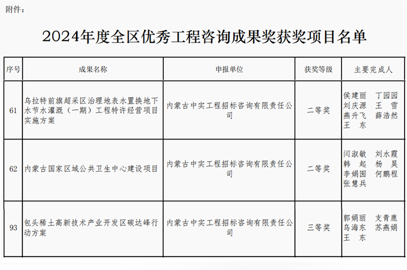 2025-04-1610067 次2025年4月16日,内蒙古工程咨询协会公布了2024年度优秀咨询成果奖获奖单位名单,我司取得两个二等奖和一个三等奖,我司专业能力和服务质量再次获得行业的认可。此次获奖,不仅体…
